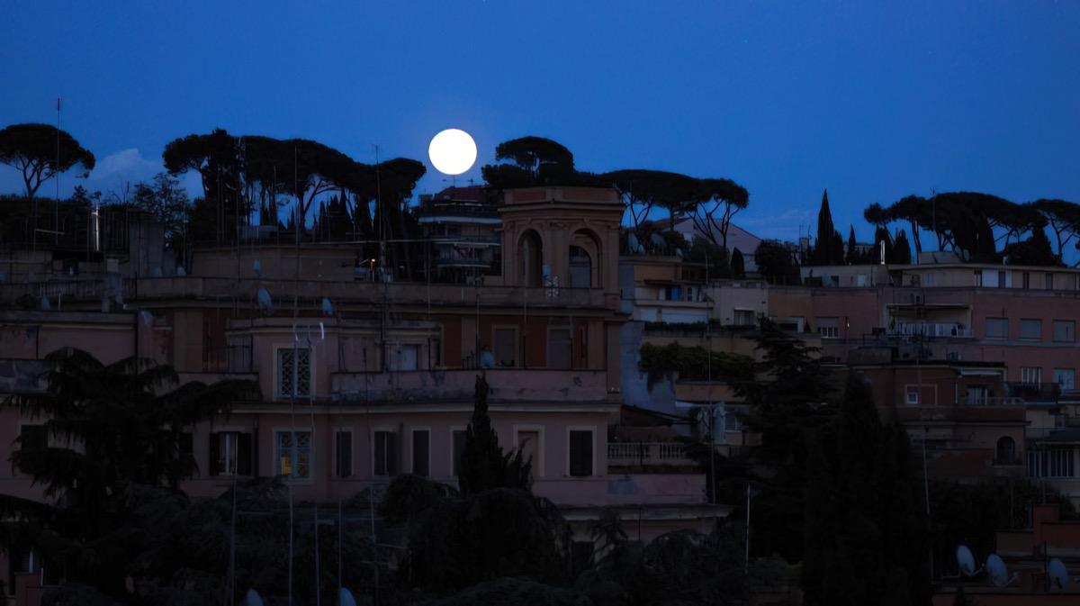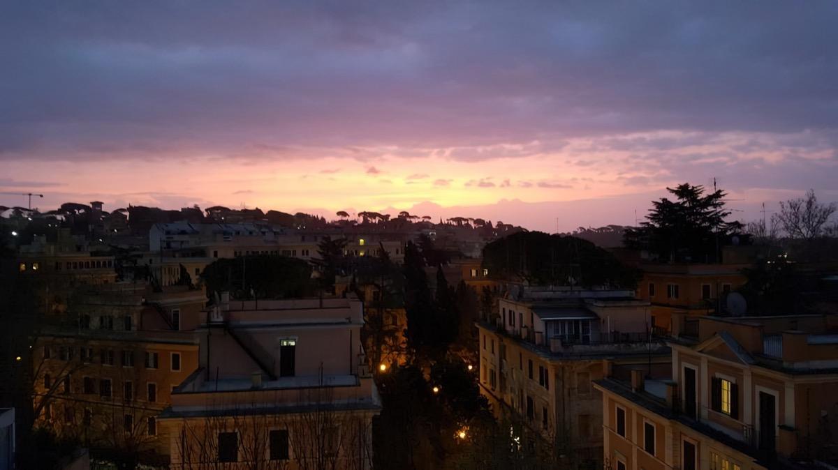 The view is on the terraces and roofs of Rome, the Parioli skyline, the Lebanese cedar, and the trees of Villa Riccio.
